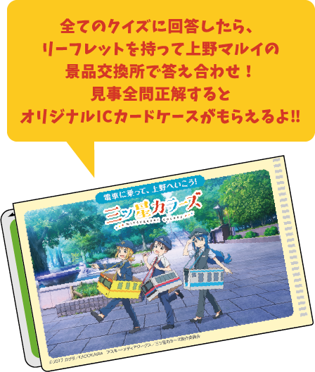 「『三ツ星カラーズ』×上野鉄道三線クイズラリー」リーフレットに書かれた4つのクイズに挑戦!