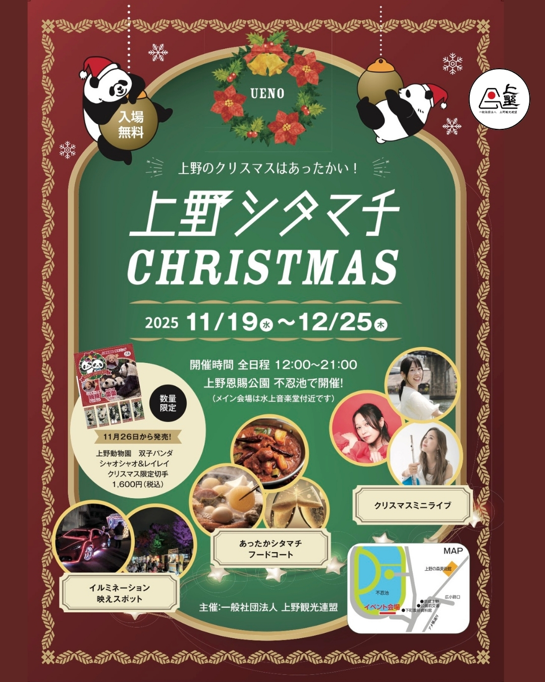 上野シタマチCHRISTMAS・上野公園不忍池ステージタイムテーブル