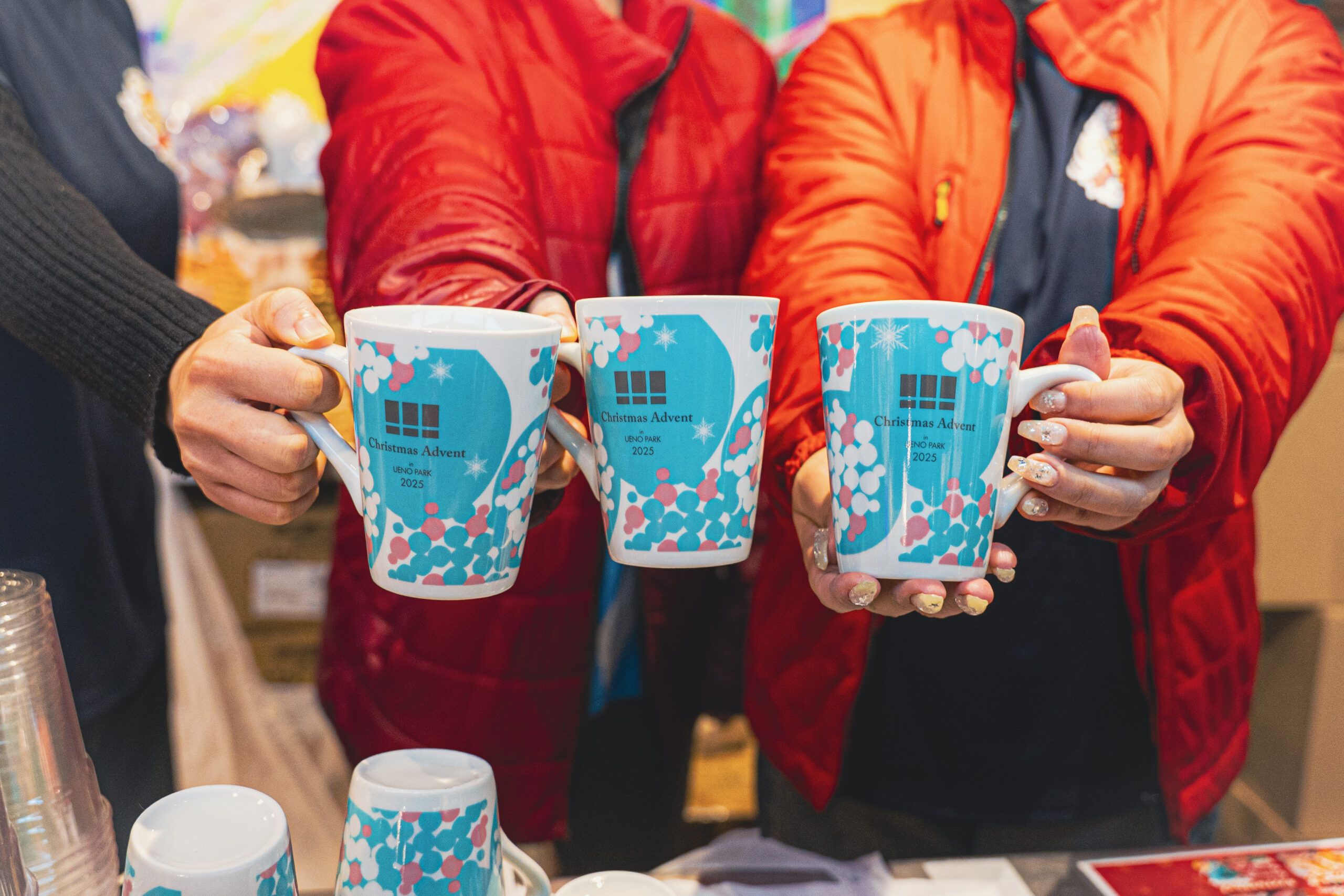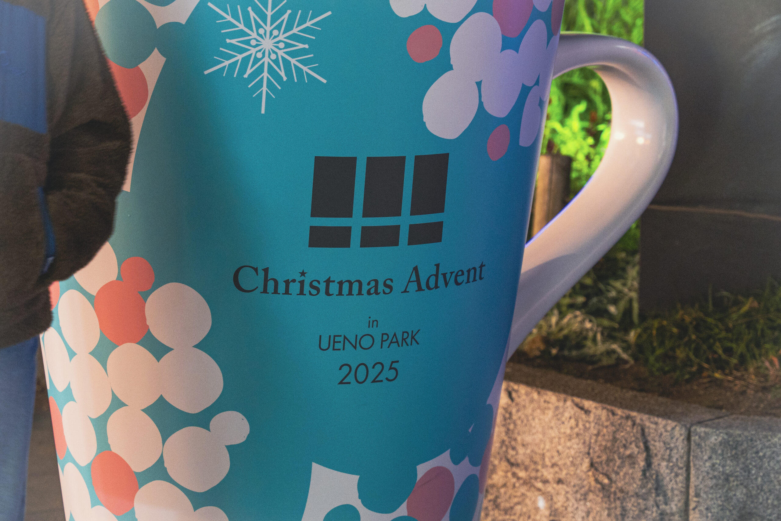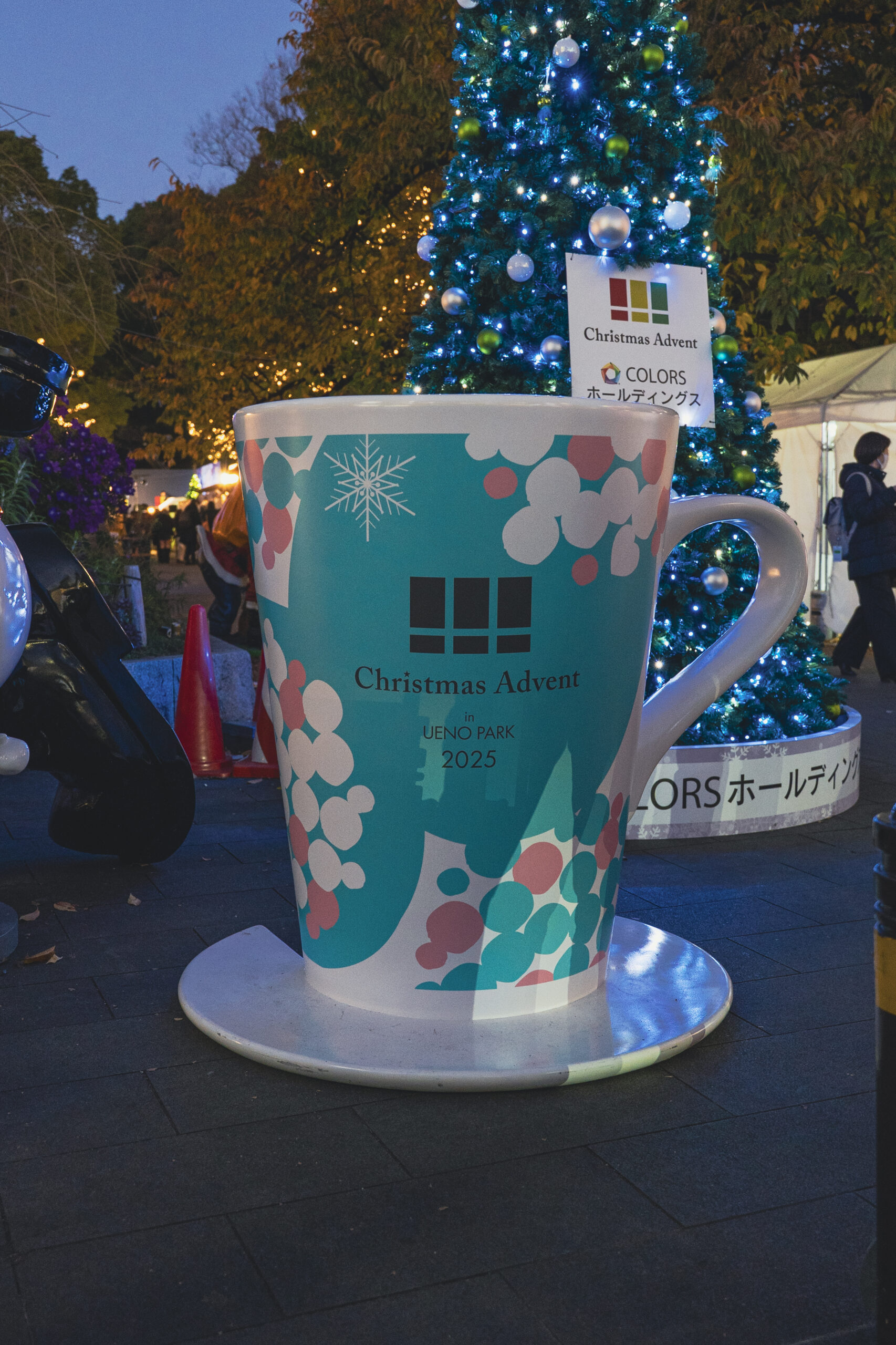 上野公園・袴腰広場には、クリスマスを彩る マグカップオブジェ が登場し、来場者の皆さまを温かく迎えています。